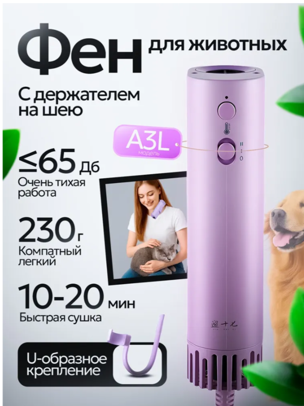 Фен портативный, для сушки домашних животных, с креплением на шею